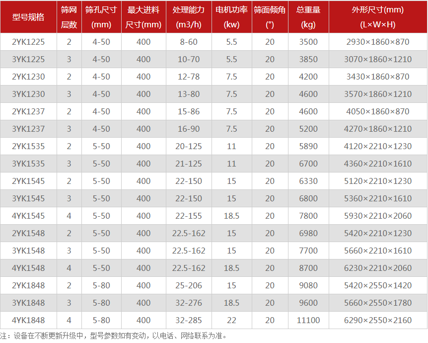 圆振筛的技术参数以供您参考